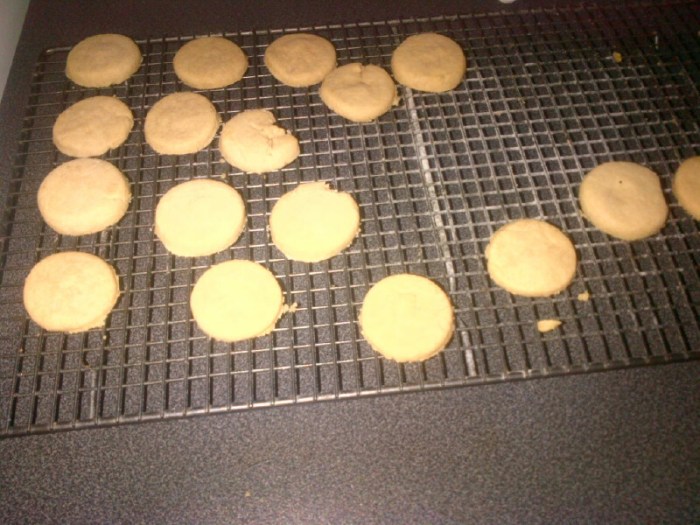My lovely wife is making afternoon tea for us.. This is the first part.. Shortbread (rounds made by an egg cup).. They are FREAKING deeee -LISSHH us x