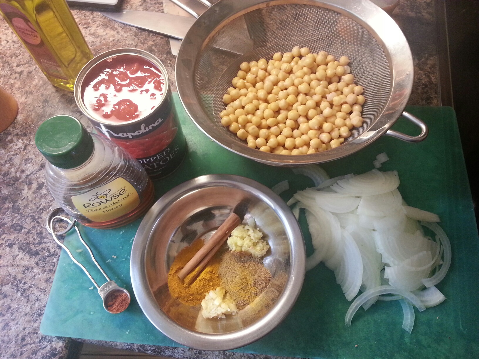 “What a brilliant dish. I did however add an extra teaspoon of honey. I also sloughed off the skin from the chickpeas on advice from Mr.Fitz. It took me 30 mins:-( Don’t forget to season with salt and pepper. Enjoy”