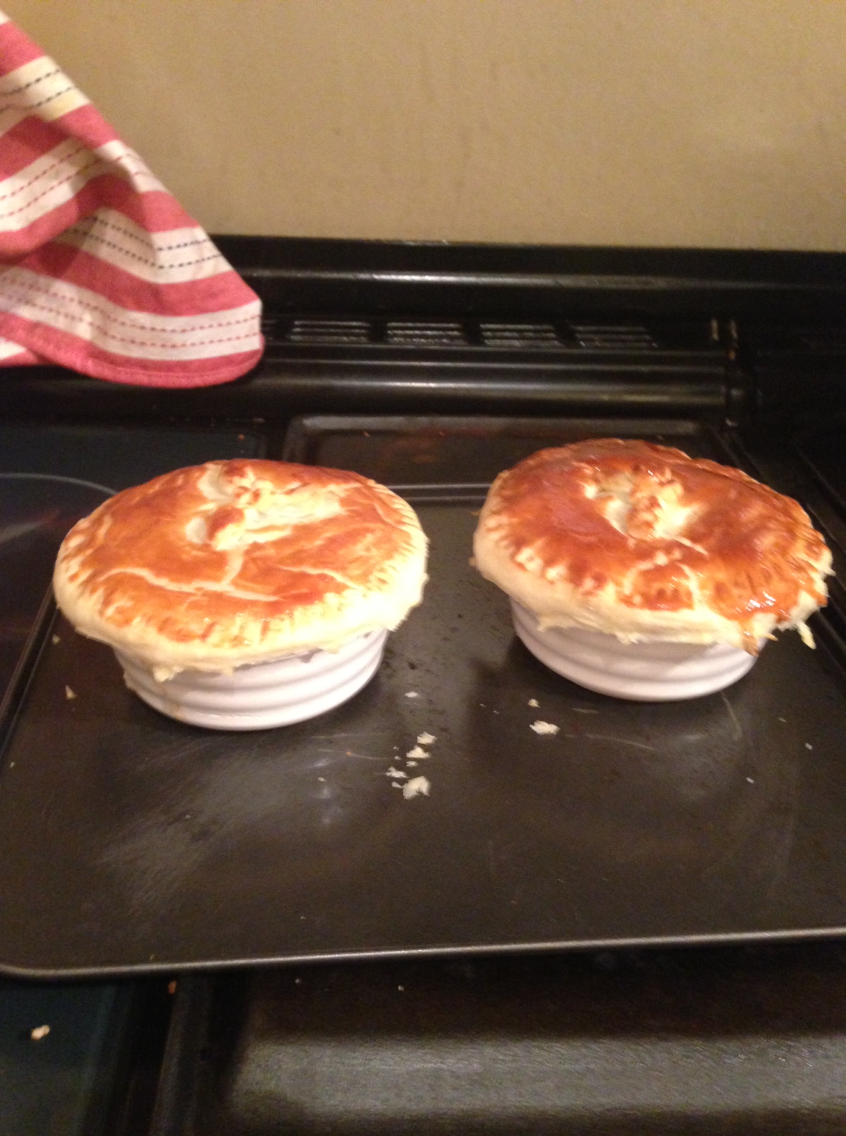 Cut out some puff pastry for the lids thanks to Mrs S for the design. Baste with egg yolk and put in the oven gas mark 6 for 30 mins.