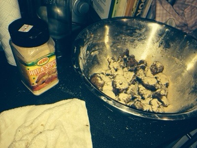 I had a great bit of beef yet decided to turn into chicken fried steak ruined says Mrs Fitz absolutely ruined yet did serve her cauliflower cheese as well and home-made Fries chips as we call them in England..
