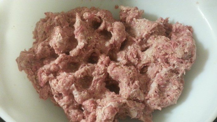 This was again thoroughly mixed by hand until uniformly merged with the meat.