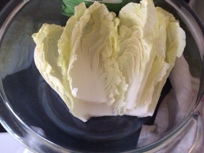 So having decided on blanching some Chinese lettuce leaves you know the one , the white crunchy number