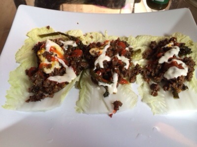 Having simply poured boiling water on them leaves till just soft, reheated the Lebanesey thingy and popped on top of the leaves, added sauces on top of chola, Paul Newman’s Ranch dressing and a couple of sprinkles of jalapeno relish sauce., simply rolled up tucked under avoiding any drips..