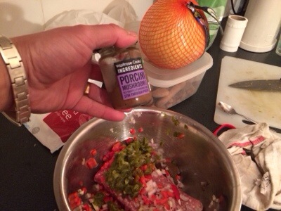 Firstly defrosted the mince looked in the fridge gone for banana Shallot, jalapeno peppers and red Romano pepper with the addition of some porcini mushroom paste and salt-and-pepper that’s it no filler no breadcrumb no egg just pure meat.. Well apart from the flavourings..