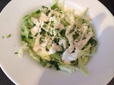 also I light salad of crisp iceberg lettuce and fresh parsley dressed in Paul Newman Ranch dressing