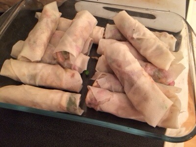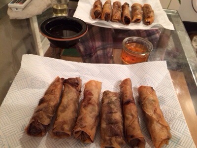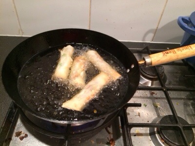 Rolled into the wrappers and simply shallow fried in a wok of vegetable oil