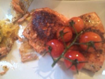 Simply pan fried in pimped mrs Middletons roscoff garlic oil.. Till the skins go crispy .. Popped in some cherry tomatoes on the vine.. And lastly the only egg left in the fridge..
