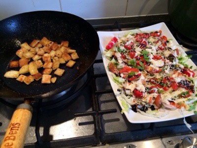 Some cherry tomatoes.. And some fresh made croutons .. Simply chopped bread and fried in the mrs Middletons pimped roscoff garlic oil ..