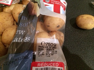 And some new spuds,, expertly peeled by mrs Fitz.. Now.. Check out the date 0f sale on these .. Not only heavily reduced yet also a long time storage . and blinking perfect. !!