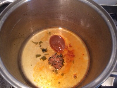 Took some chicken stock.. (that’s as much chicken as this will see!).. Some miso soup paste.. Veg stock.. To the boil (the kettle assisted here ahem x)