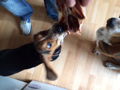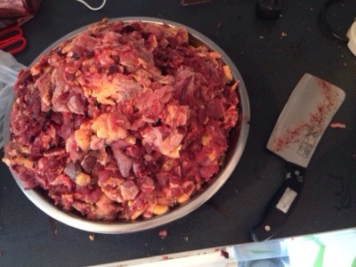 The hounds were having a wonderful time, as I chopped it up they got fed..
