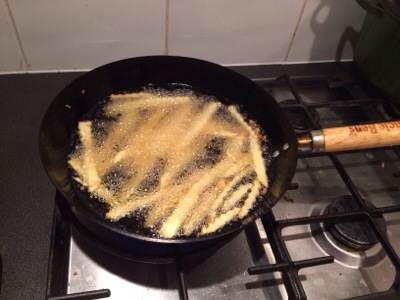 Simply cut and fried in sunflower o in the trusty uncle bens wok. That wok is over thirteen years old, and came free with two jars of sauce!! Many pans have been and gone yet that has stayed true..