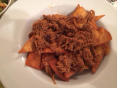 Homemade tortilla chips, pulled pork and fresh avocado salsa