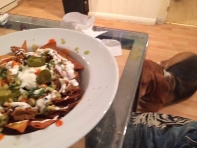 The pulled pork from the other day warmed and plonked atop the chips, sharp red cheese for Mrs Fitz.. Nuked a little to melt..