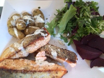 Mrs Fitz had salmon with new potatoes and salad for lunch so we had some spuds left over too..