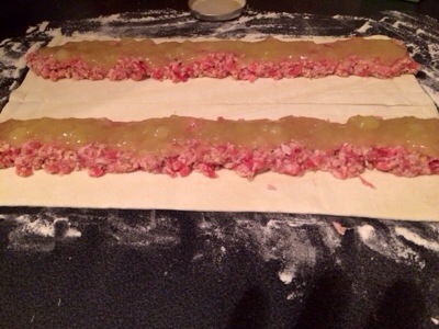 Yet roll they do.. And with the help of a Cotswold leghorn egg they stick and glaze well.. Popped into the oven at 200 degrees.. Till risen and pastry cooked..