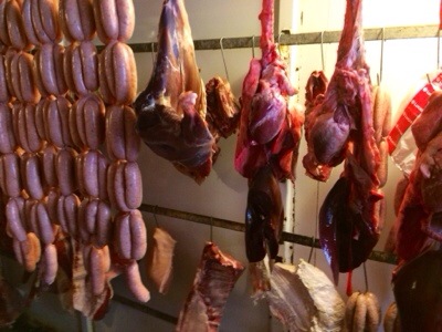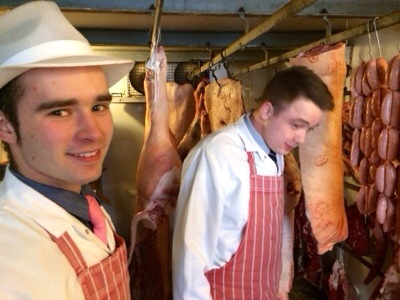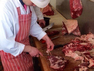 Had chosen IAN at lees butchers in earls barton to be the supplier of my supper . Unfortunately he wasn’t in.. And they didn’t have the onglet I wanted fresh from the beast.. So into the cold store to look at the meats available .. And a mighty fine cold room it is to be sure !! I am very lucky birthday eve boy indeedy!