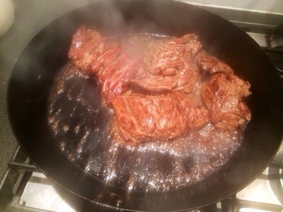 Hot iron pan.. Slammed that sucker down for minutes on each side only..