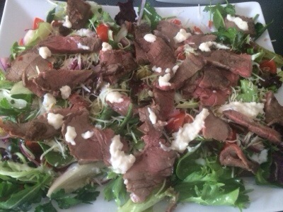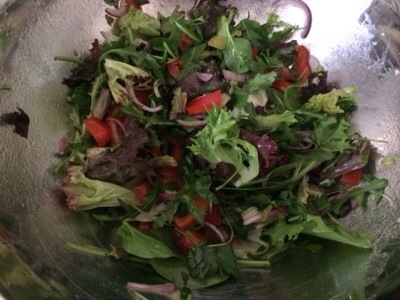 Mrs Fitz’s lunch today was brought to us by the leftover roast beef from last night.. A simple salad of a good bag of store bought leaves.. Baby plum tomatoes, chopped red onion, Turkish red pepper and Turkish yellow hot pepper ..