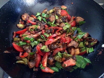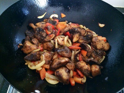 Fried off the onion and pepper.. Added the marinated mushrooms.. Can’t recall what I marinated them in!! They are smelling good though..