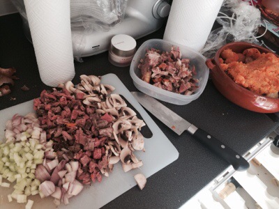 With great beef, a few spuds, carrot and swede mash.. It had to be a take on the pasty..
