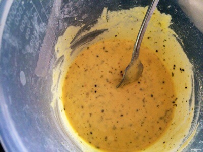 Mixing with water to make a good consistency before plonking in the cauliflower straight from frozen.