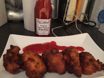 Served piping hot with some Sinclairs condiments red pepper ketchup..