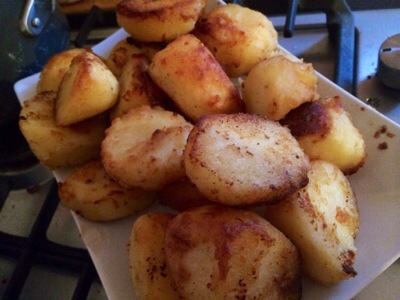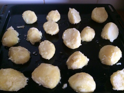 Mrs Fitz had kindly peeled and parboiled the king Edward spuds.. So they could cool down. Just simply anointing them with some of Mrs Middletons rapeseed oil.. Into the oven under the meat. To let all them juices drip drop drip down..