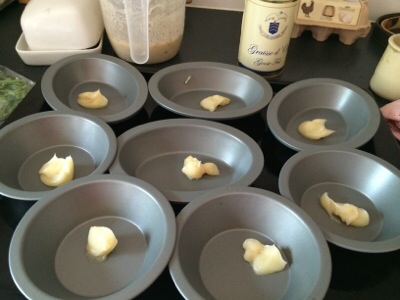 Add a drop of of goose fat in my case to the tins.. I really must get myself another Yorkshire pudding tin. Put it on the list ..