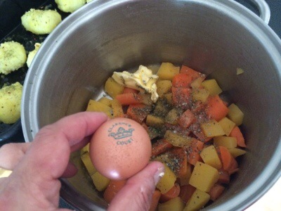 Also peel the swede and carrots for the mash.. Boil them up till tender and mash with butter . Himalayan pink salt. Bristol blend pepper, a sprinkle of chicken powder and one hens yolk .