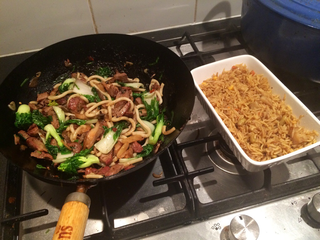 First a simple dish of udon noodles pak choi and oyster mushroom .. Stir fried in the trusty ( not rusty) uncle bens freebie promotional wok.. I tell you that wok has been with us for over a decade! What a great promo gift huh? Hmm must mail them about that . Add that to the ever growing must mail them about that list.. Hahaha
