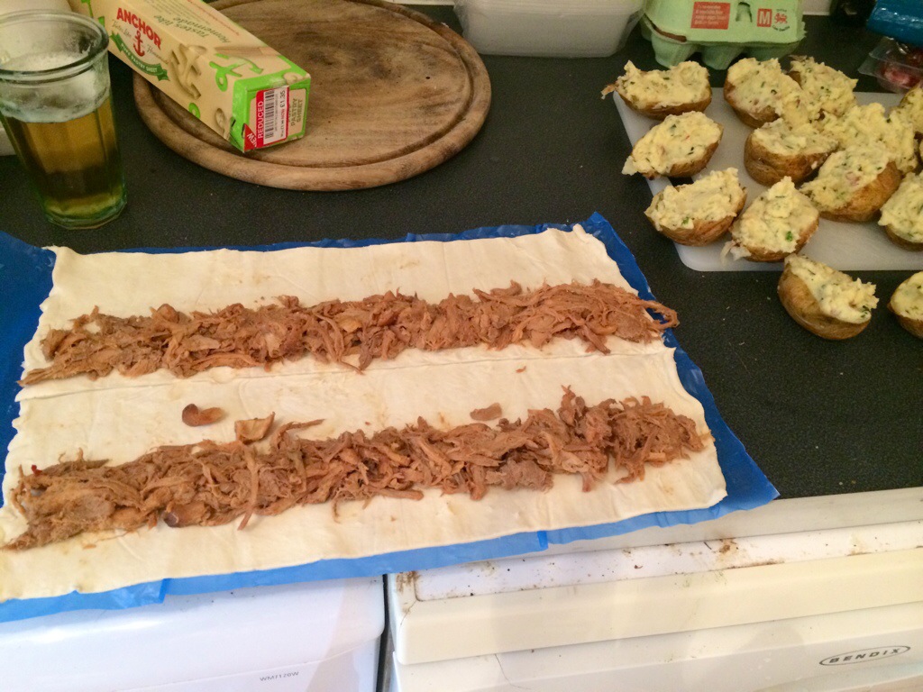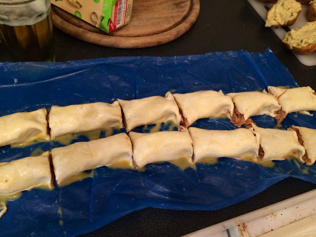Pulled pork sausage rolls.. Last tub of delicious porkiness left in the freezer .. Must make up another batch . Must get a hold of Butcher Dave.. Hmmm