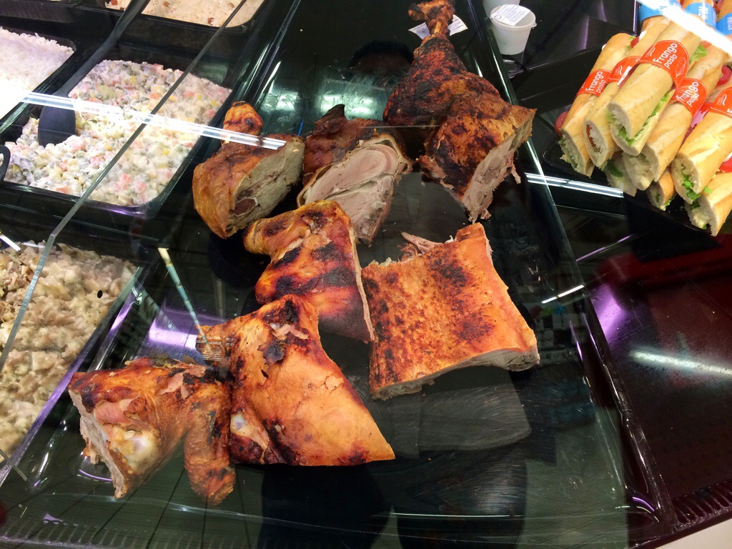 Have arrived in Lisbon. Straight to the supermarket. Check out this young piggie already cooked and ready for the big bad wolf.