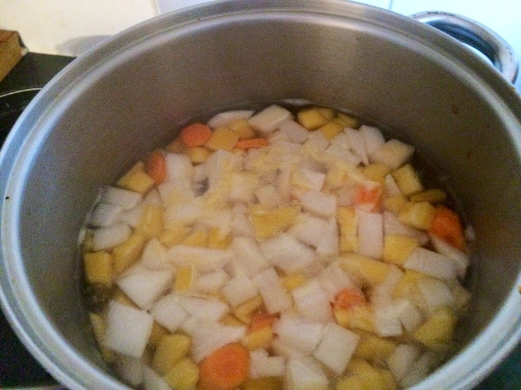 Veg? Petit pois ..and Vinces turnip.. With a reduced swede and the last of the carrots . Boiled and mashed up..