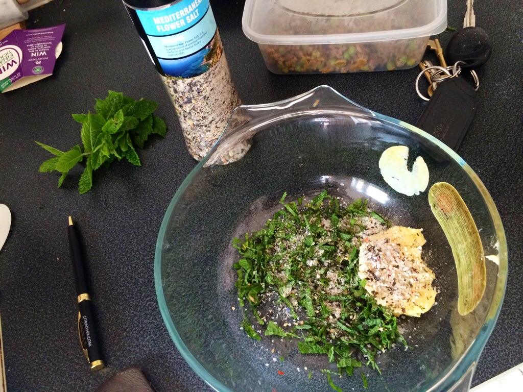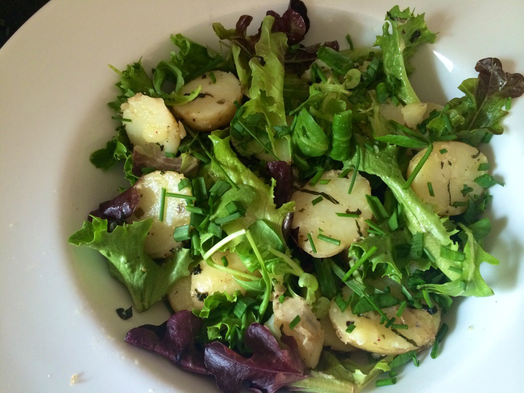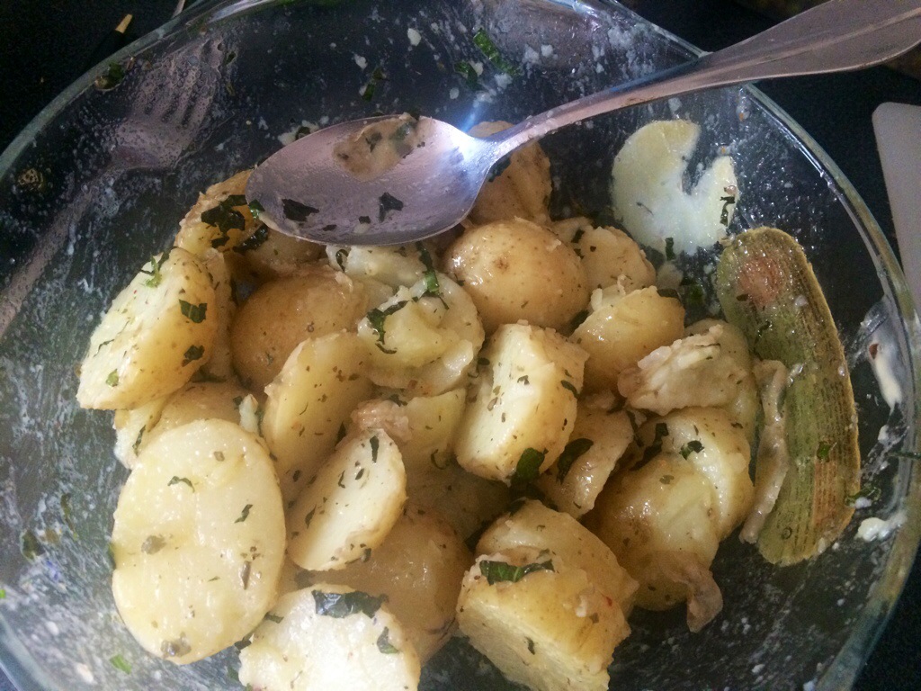 Boiled spuds dressed in fresh mint , Mediterranean flower salt.. and French sea salt butter.
