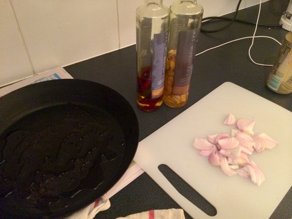 A pink onion chopped and fried off with mrs Middletons pimped roscoff garlic and Italian chilli oils..