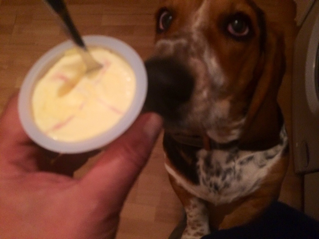 2. And how long did that poor dog have to wait before you gave him his share? He (it is a he?) looks so desperate for just a taste!