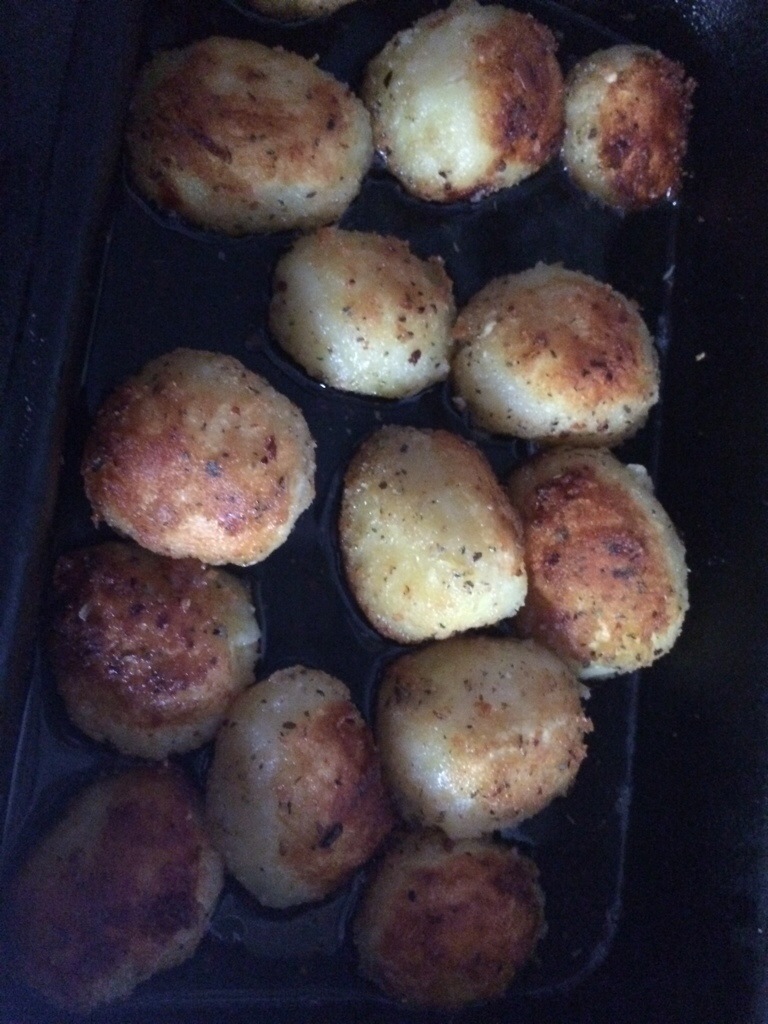 The spuds.. Par boiled .. Into goose fat.. After a small seasoning of a strange roast potato seasoning ..