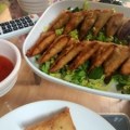 Roast beef and prudys batatas fritas, feta, mint and peas