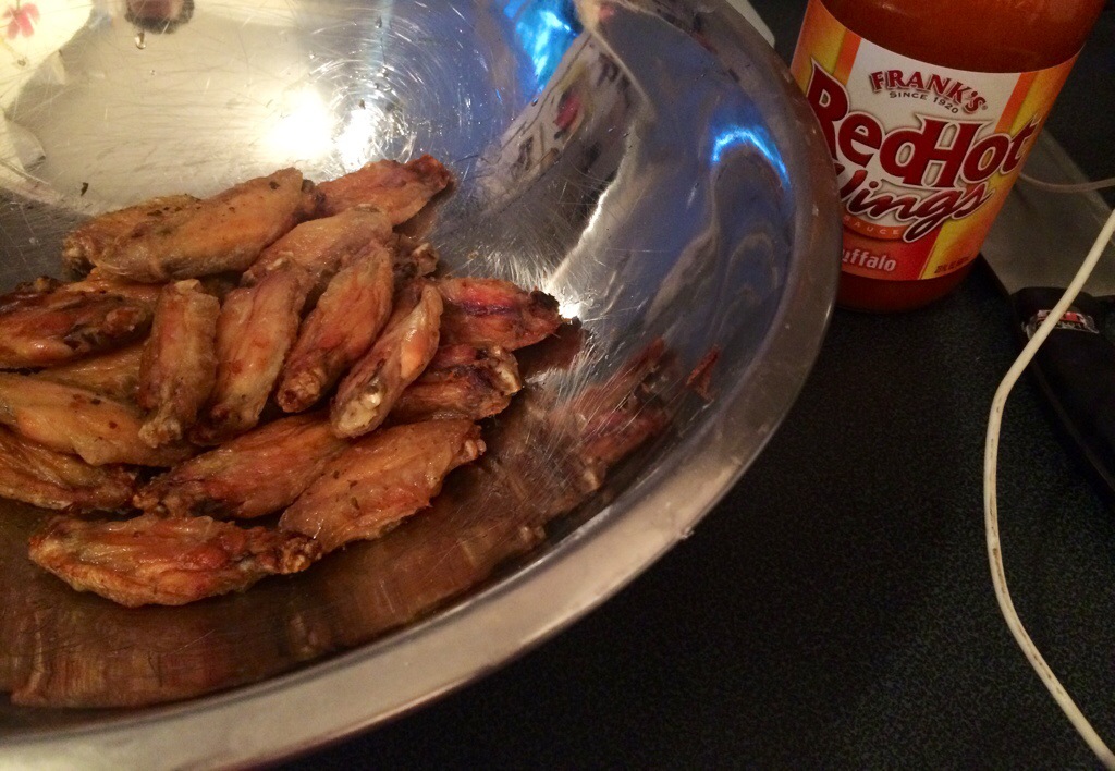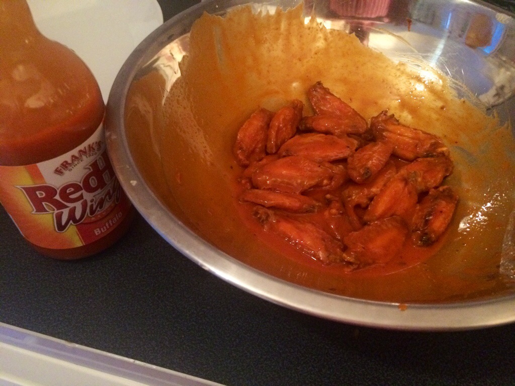 Immediately toss them in the wing sauce .. And I make no apologies .. it HAS to be Franks.. After all that’s where it all started right?
