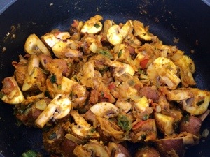 Then the chopped mushrooms.. Let that all meld together for a while..