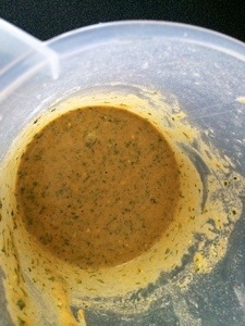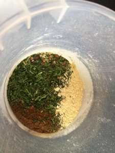 A mix with a nod to the closer east here.. Gram flour, garam masala, mango powder , ghormet sabzi from iran, Himalayan rock salt, anjwani seeds.. Dried chilli flakes and some good twists of Bristol blend pepper ..