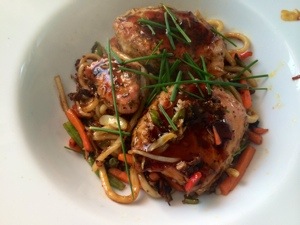 For Mrs Fitz.. Udon noodles with stir fry veg and chilli tuna steaks.. Simple indeed ..