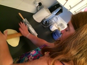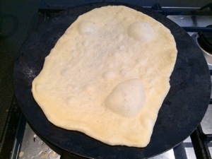 Rolled and cooked on the iron pan.. That’s Serena there rolling the dough..jolly good work! (and elMrs Fitz stretching the dough )..