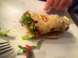 All wrapped up with a salad .. Sour cream with garden chives.. And a drop of the salsa that needed eating..