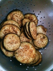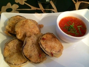 Aubergine tempura.. Seasoned with herbs spices and lemon juice..