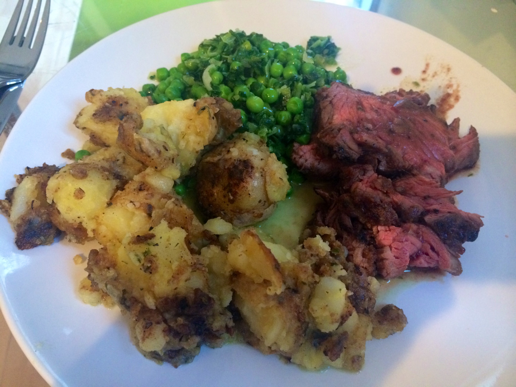Simply boiled .. And popped into the pan with the steak once one side was cooked.. This cut needs to be served medium rare MAX.. and cut against the grain..