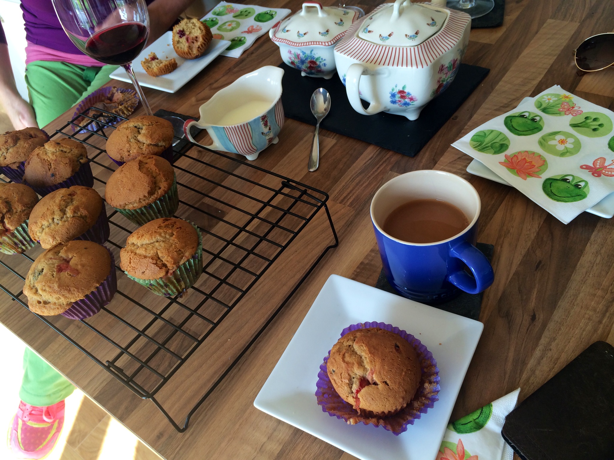 Cool thing was.. We went and had tea with some friends.. They made fresh fruit muffins .. Very nice.. Different.. Replacing vanilla for cinnamon in the recipe .. Yet nice all the same.. C’mon you can’t beat freshly baked cake of any sort straight from the cooling rack!
