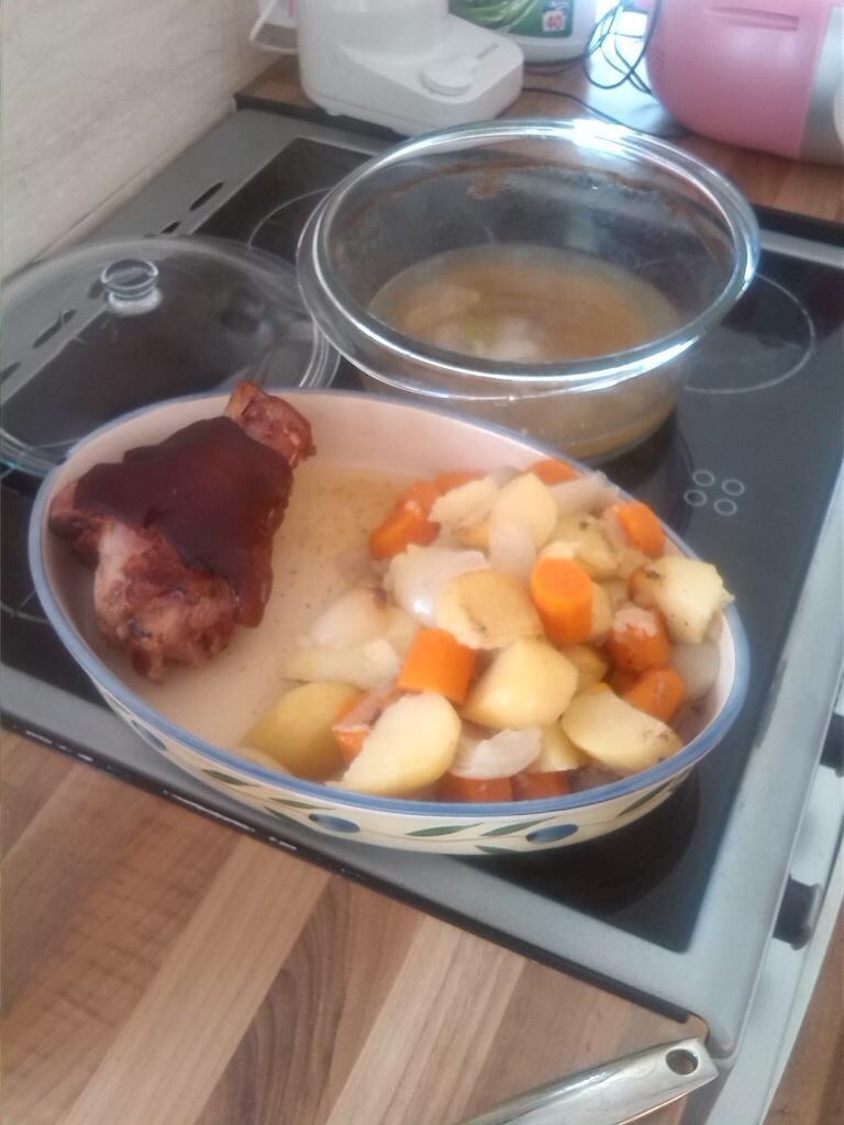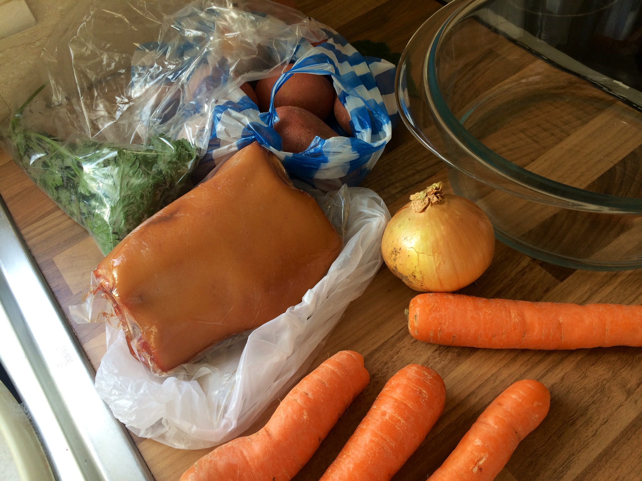 Plenty of time to chat, play with the puppy.. Teach it to eat the ends of carrots .. And breath in the deep porky homely fragrance developing in the kitchen..