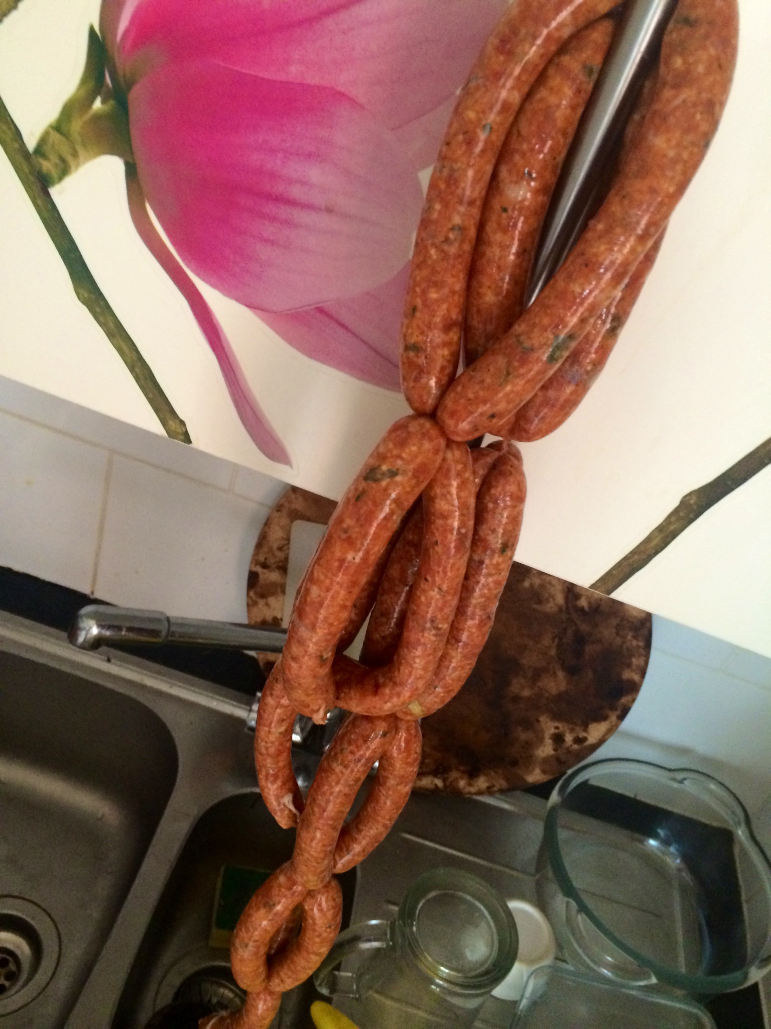Another batch of deliciousness .. Sausages hanging offa the cupboards..
